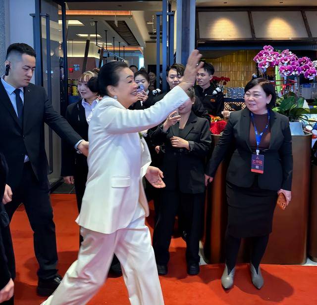全程她都站在C位,嗓门洪亮地跟粉丝打招呼,剪彩的时候还抢着拿剪刀,剪完红布又挥手跟大家互动,笑得合不拢嘴,风头直接盖过了旁边的汪小菲。
