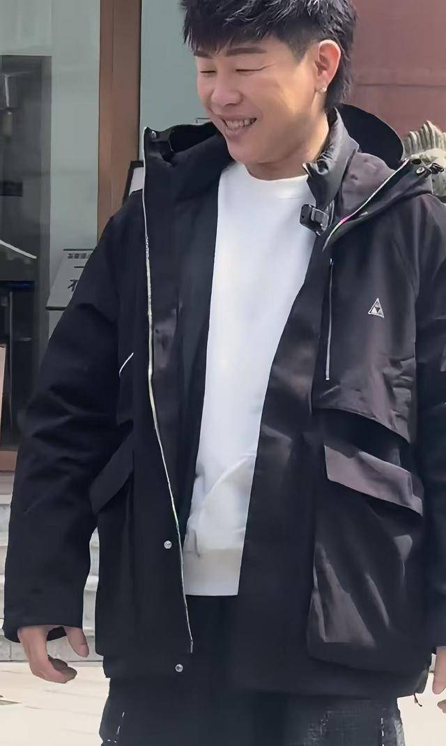 身材也壮实了很多,肩背看着很宽厚,肚子也圆圆的,隔着衣服都能看出来有点发福,整个人透着一股生活化的松弛感,完全没有刻意管理身材的样子。