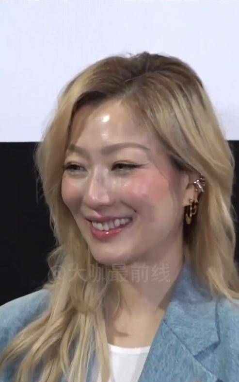 当天她的打扮十分吸睛,一头亮眼的黄色短发,搭配一身干练的蓝色西装,整个人看起来时尚又有气场,完全不像53岁的人。