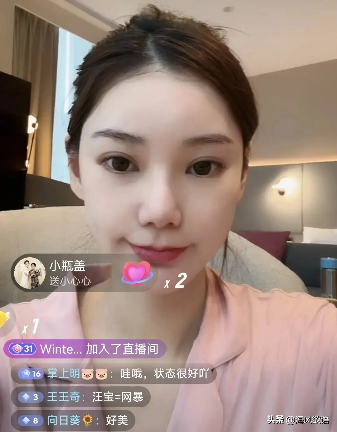 直播里的马筱梅状态好得让人意外,穿着粉色居家服,面色红润,完全不像刚剖腹产13天的人。面对网友刷屏让她多休息,她笑着说自己只播一小时,肚子也不疼,还透露月子中心工作人员已经用姜汁帮她洗了头。