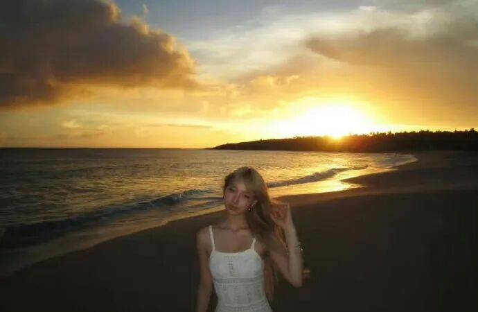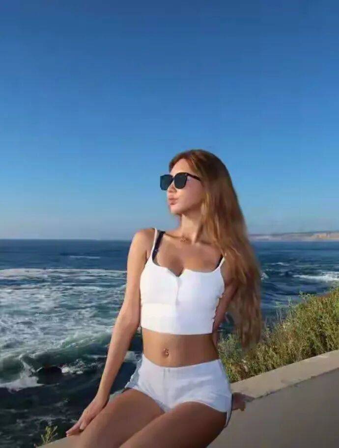 照片背景为加州海岸,阳光下的金色长发与小麦色肌肤形成鲜明视觉风格,被网友形容为“美式辣妹风”。