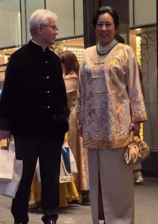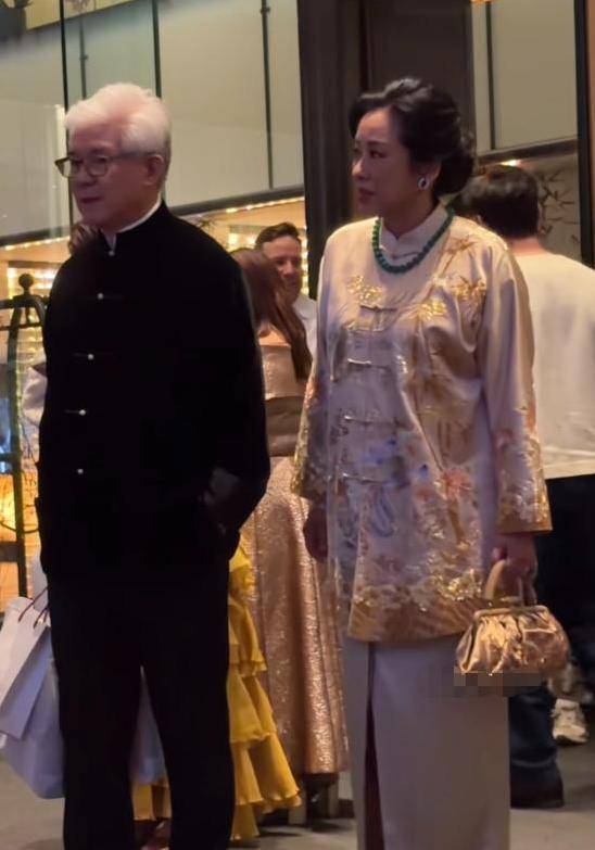 罗康瑞,78岁的丈夫,在朱玲玲的陪伴下忙碌不停,那晚他选择了新中式的黑色服装,与朱玲玲共同演绎了夫妻的形象。尽管他的头发已经白了,但他的精神状态很好,腰部挺直,给人的感觉并不像一个即将八十岁的人。晚宴期间,朱玲玲不仅要接待媒体,还要招待客人,罗康瑞紧随其后,帮忙提东西和递送话筒,完全符合“贴身助理”的工作模式。