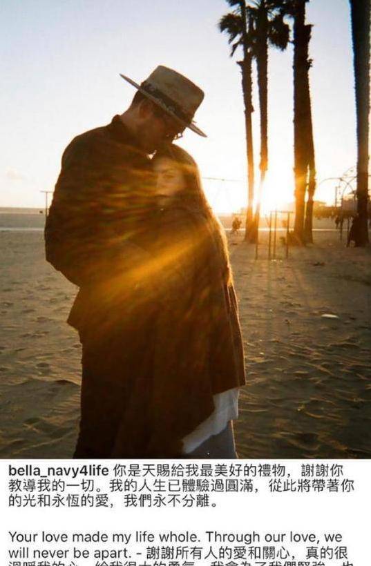 在2023年,她前往上海进行家庭团聚,期间遇到了她现在的丈夫,并与他共度了一段时光,两人在去年正式宣布结婚。婚礼上的一个小细节迅速登上了热搜榜单——Bella将高以翔最钟爱的向日葵制作成了手捧花,并在致辞时宣称"爱情永远不会消逝,只是以另一种形式继续下去"。