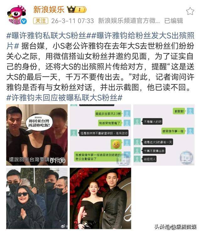 该消息被曝光也是因为许雅钧私下建议大s粉丝,暴露操控链。此前台媒报道,许雅钧撩大s粉丝,而他的回应是因为大s走后,那个女生帮着说了很多好话,为了感谢对方,想私下请对方吃饭。这不就印证了这个律师说的没错,许雅钧确实与粉头有联系。