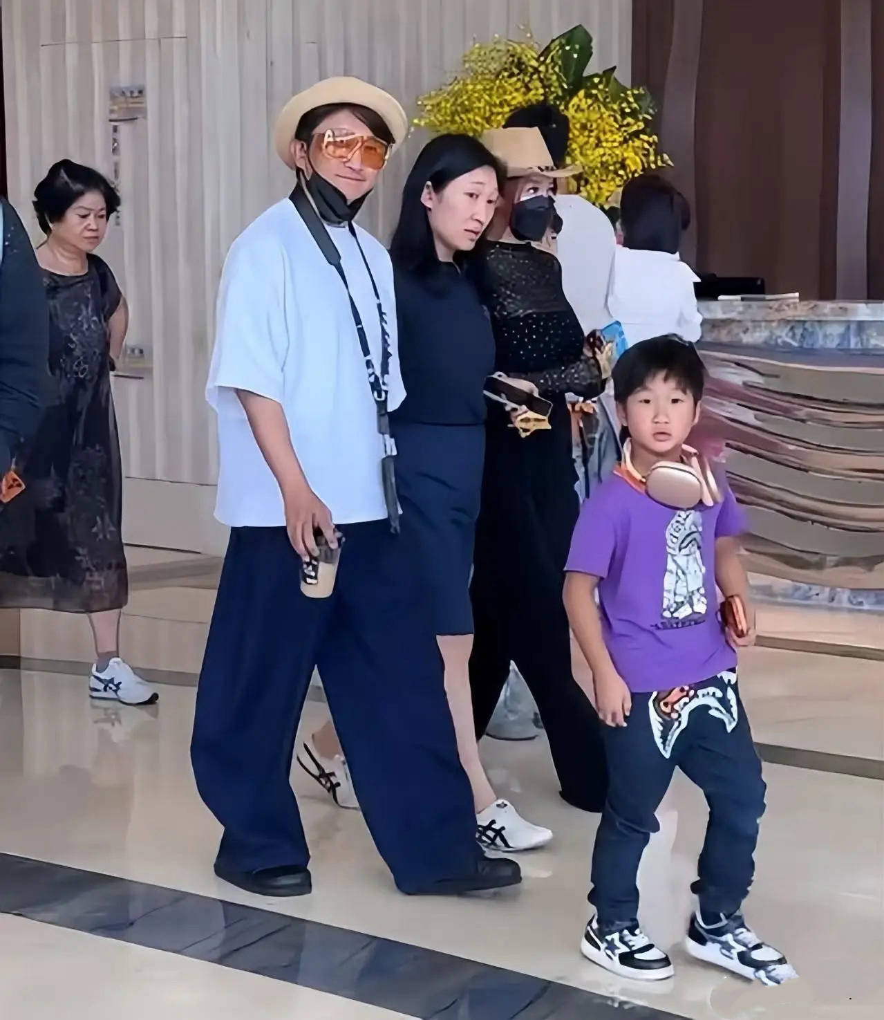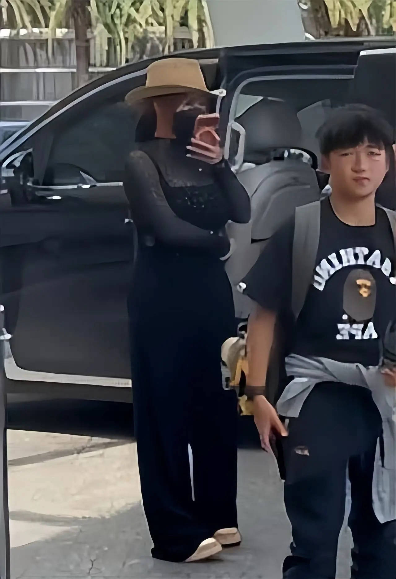 二儿子和妈妈一样,也是all black的穿搭,他从打生长素以后,身高确实长大了不少、而且看着也变胖了。自己的背着双肩包、穿了一双篮球鞋,这双鞋子一看就价值不菲。