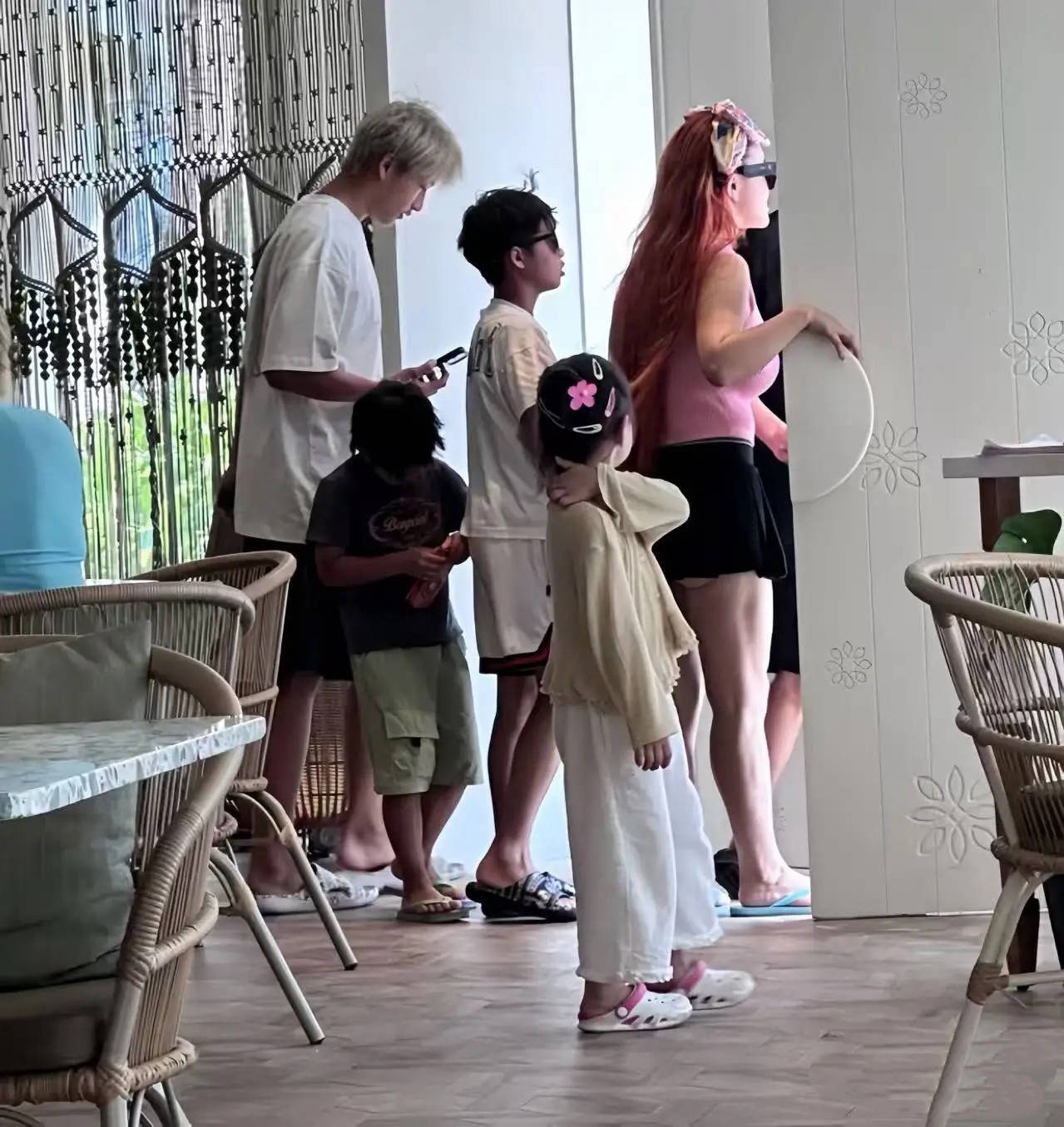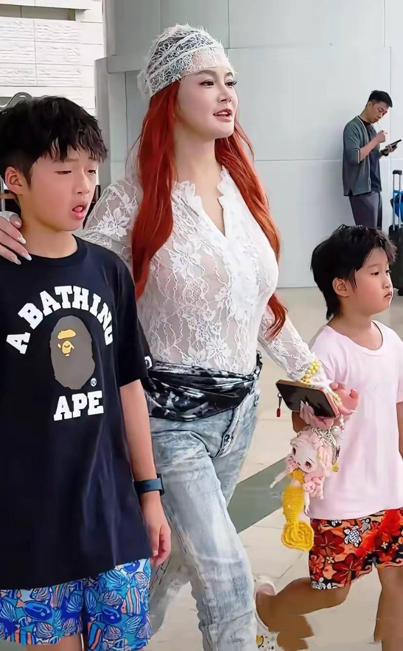 可春节的时候他们一家人到马尔代夫旅游,冉莹颖穿粉衣配短裙膘肥体壮一看就不好惹。而大儿子轩轩染了一头白毛、也很有个性。