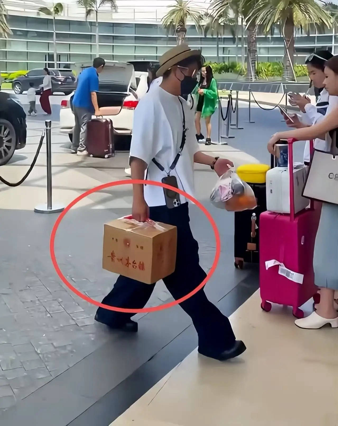 当然最令人意想不到的是,邹市明上楼的时候还搬了一箱茅台酒。出门度假还带一整箱茅台酒,这个操作也是看不懂了。