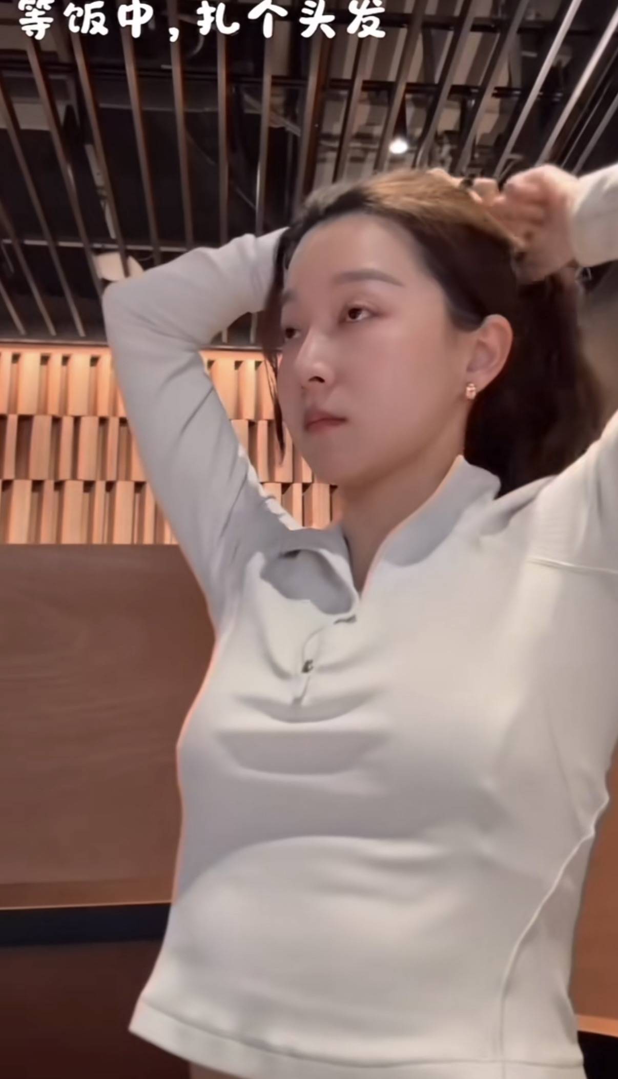 等饭的过程中,夏露就把头发扎起来了。披散着头发吃饭确实有点不太方便,把头发扎起来、顺道挽一个丸子,就清爽利落多了。