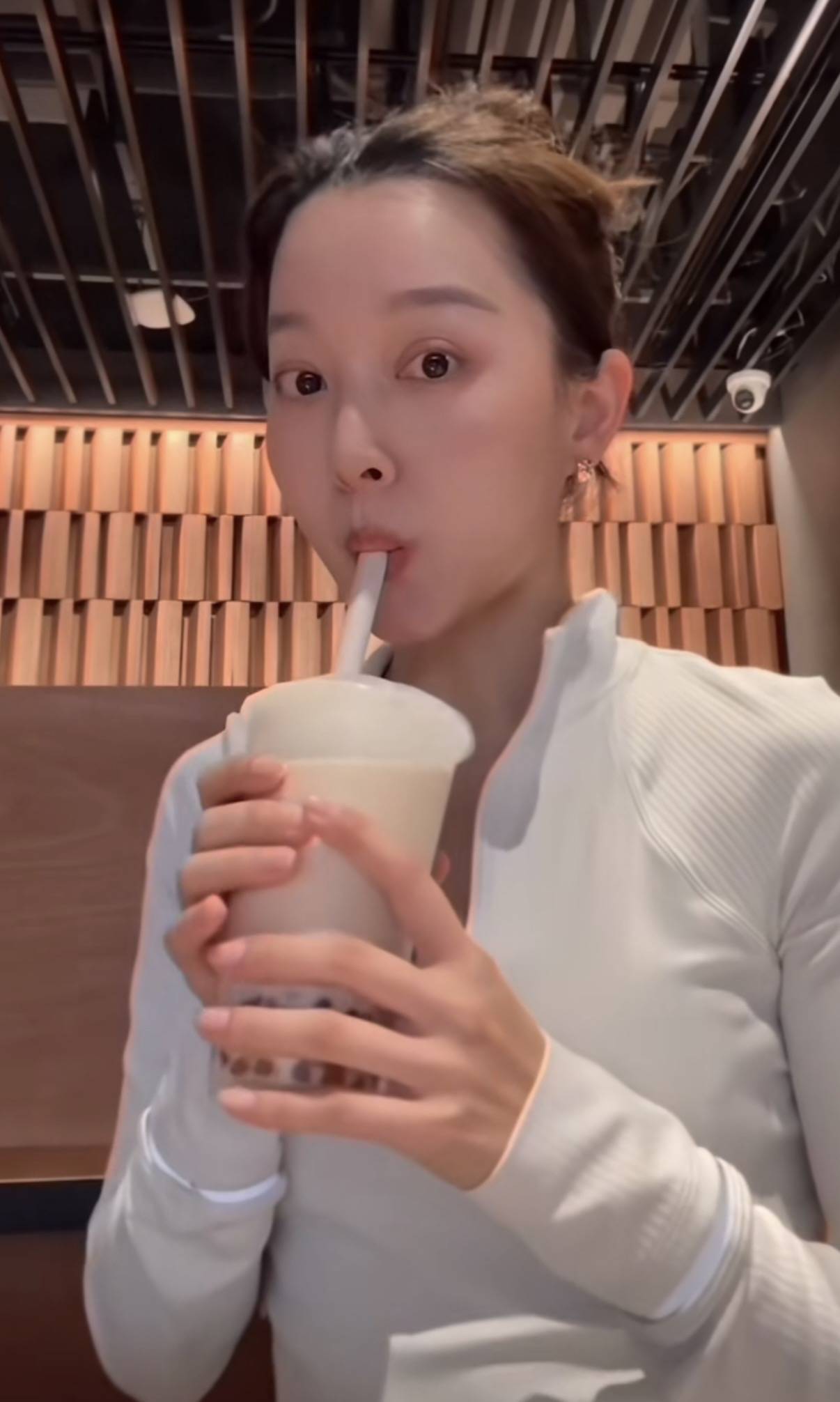 虽然夏露身材好、长得又漂亮,但其实她非常喜欢和奶茶。训练完毕之后,就特意点了一杯奶茶犒劳自己。