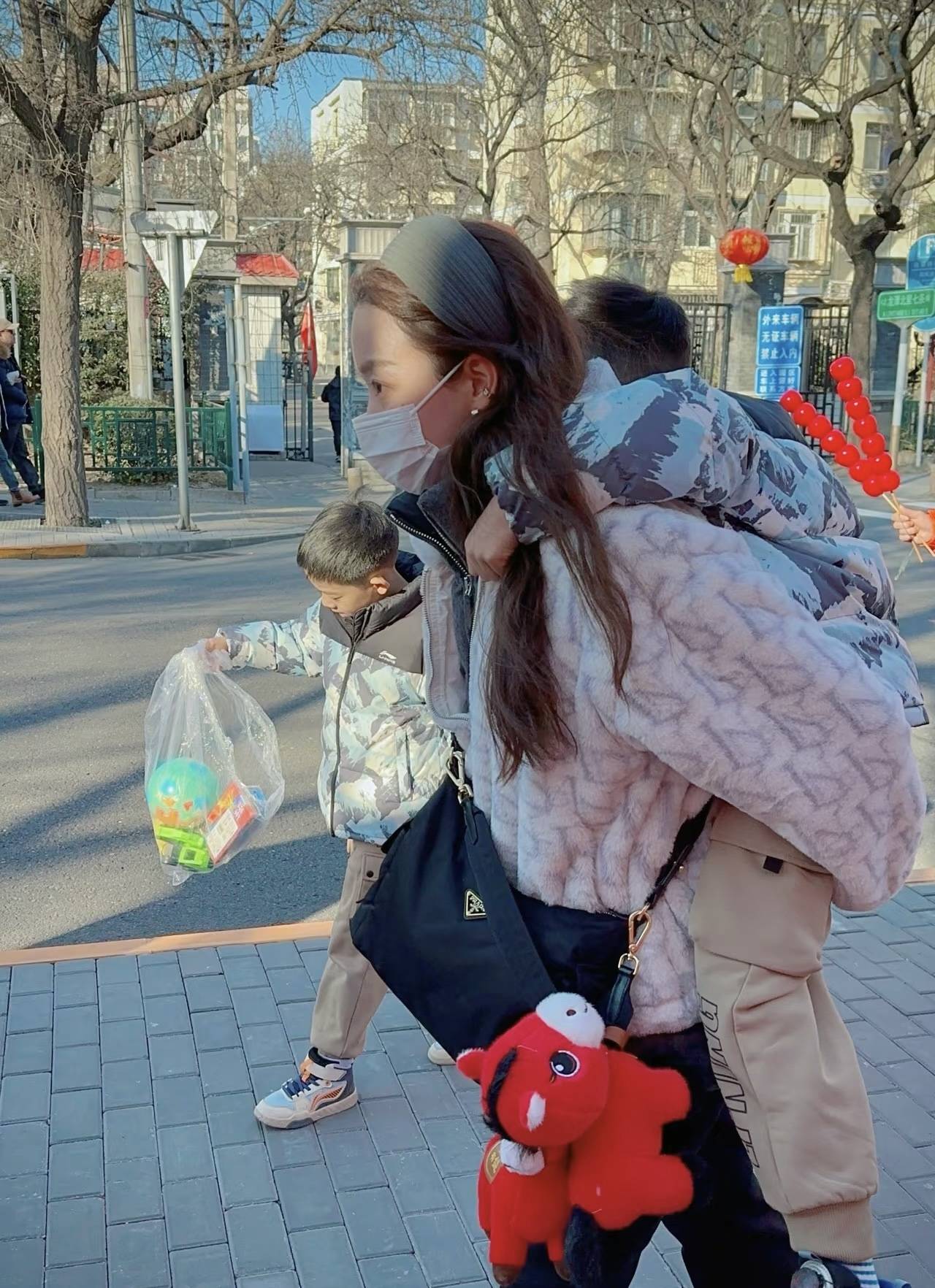 带着俩儿子逛街,大儿子精力旺盛、小儿子年龄下容易觉得累,夏露就直接把小儿子背起来,是一位很有力量、也很坚韧的妈妈,把家庭交给她、马龙很放心。