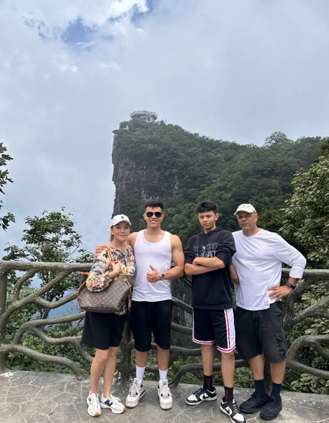 史可的小儿子18岁了,身高也也接近190了。一家人都是大高个,站在一起就是男帅女美。