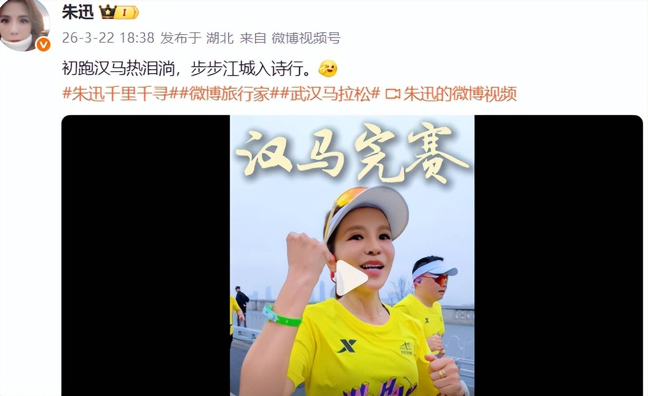 与此同时,主持人朱迅还发布了一则时长达03:29秒的短视频,该视频系主持人朱迅在武汉参加2026 武汉马拉松(汉马)时的参赛画面,下面就让我们一起来看看朱迅此次参加2026 武汉马拉松(汉马)都有哪些值得关注的亮点之处: