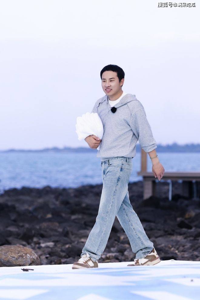 第四期节目结尾有个镜头特别戳人:徐志胜独自坐在海边的礁石上,看着不远处王传君和武大靖带着客人一起装饰那个黄色木箱,欢声笑语不断。
