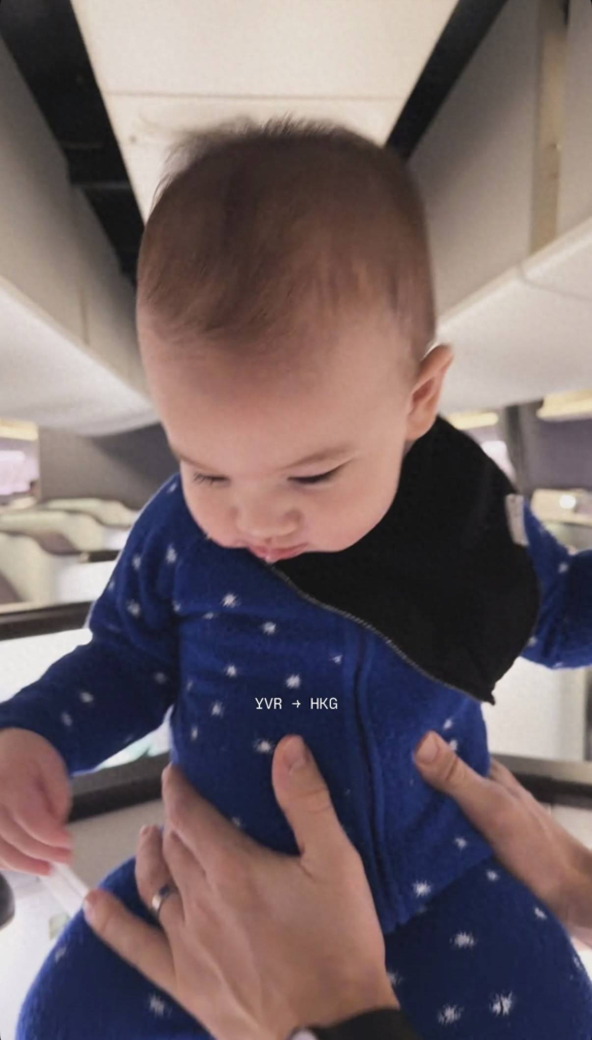 谢婷婷过去每次回香港都颇为低调,不会自行公开行程,不过自从有了儿子之后,她很喜欢分享与儿子的生活日常。一家人搭乘飞机返回香港,坐的是商务舱,空间很大,还可以逗孩子玩乐。谢婷婷的男友Mathew在舱内陪伴儿子玩乐,谢婷婷拍下了父子互动的一瞬间,罕见的是谢婷婷没有将儿子的脸蛋遮挡起来,反而大方展露。只见7个月大布林肯头发仍然稀疏,他穿着蓝色的连体衣,胸前还挂着一块黑色的口水兜,他的脸蛋胖嘟嘟的,非常可爱。谢婷婷在晒照之余,还特别写下了两个机场的代码,一个是温哥华,一个是香港,言下之意就是公开她的行程是返回香港。