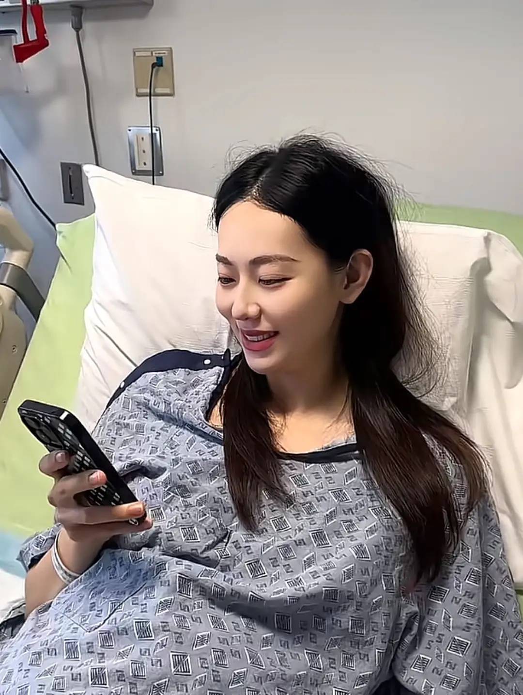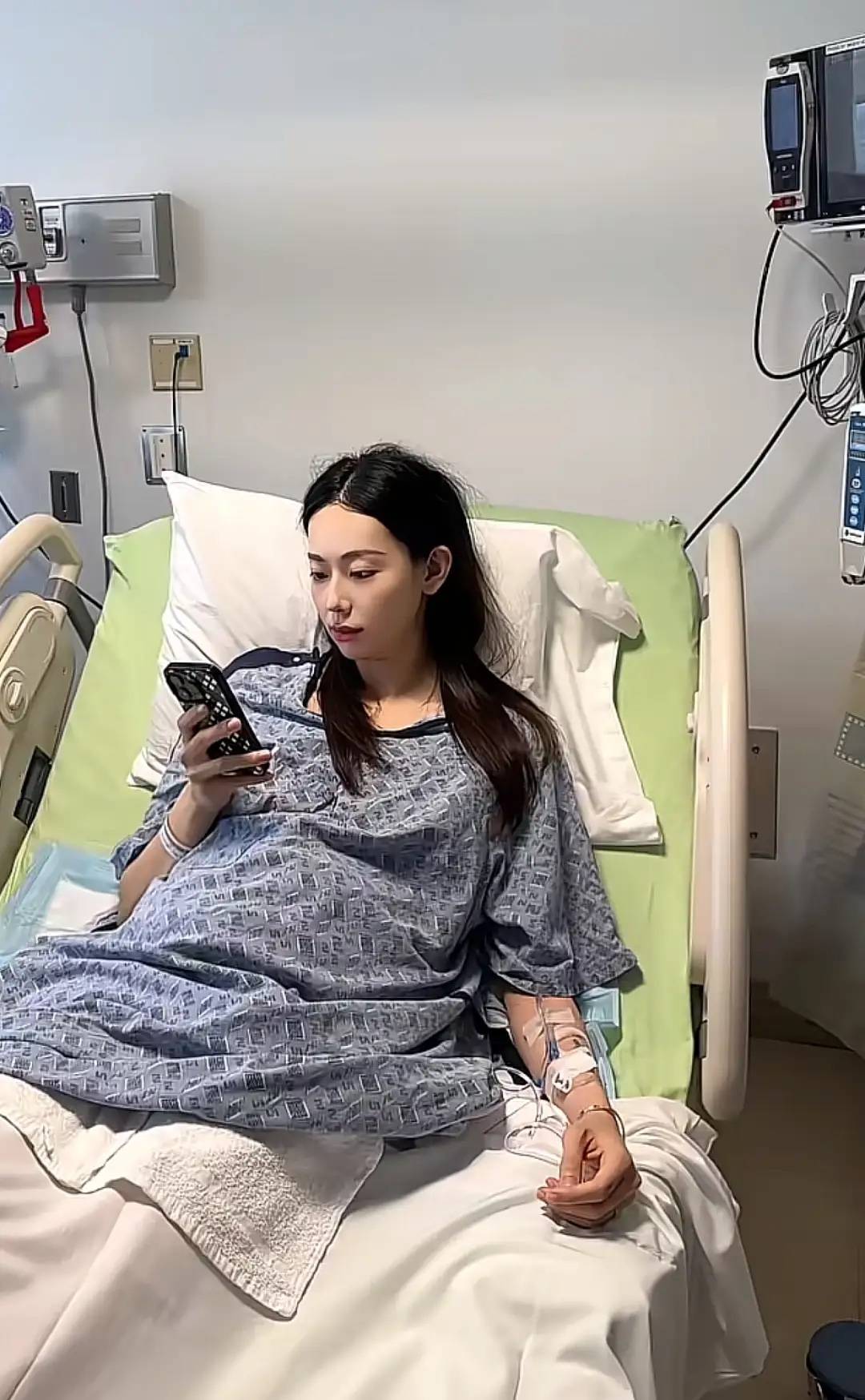 这次在美国生产的是李萍小女儿,李萍拍下了女儿待产时候的画面,躺在病床上、玩手机,一脸放松。