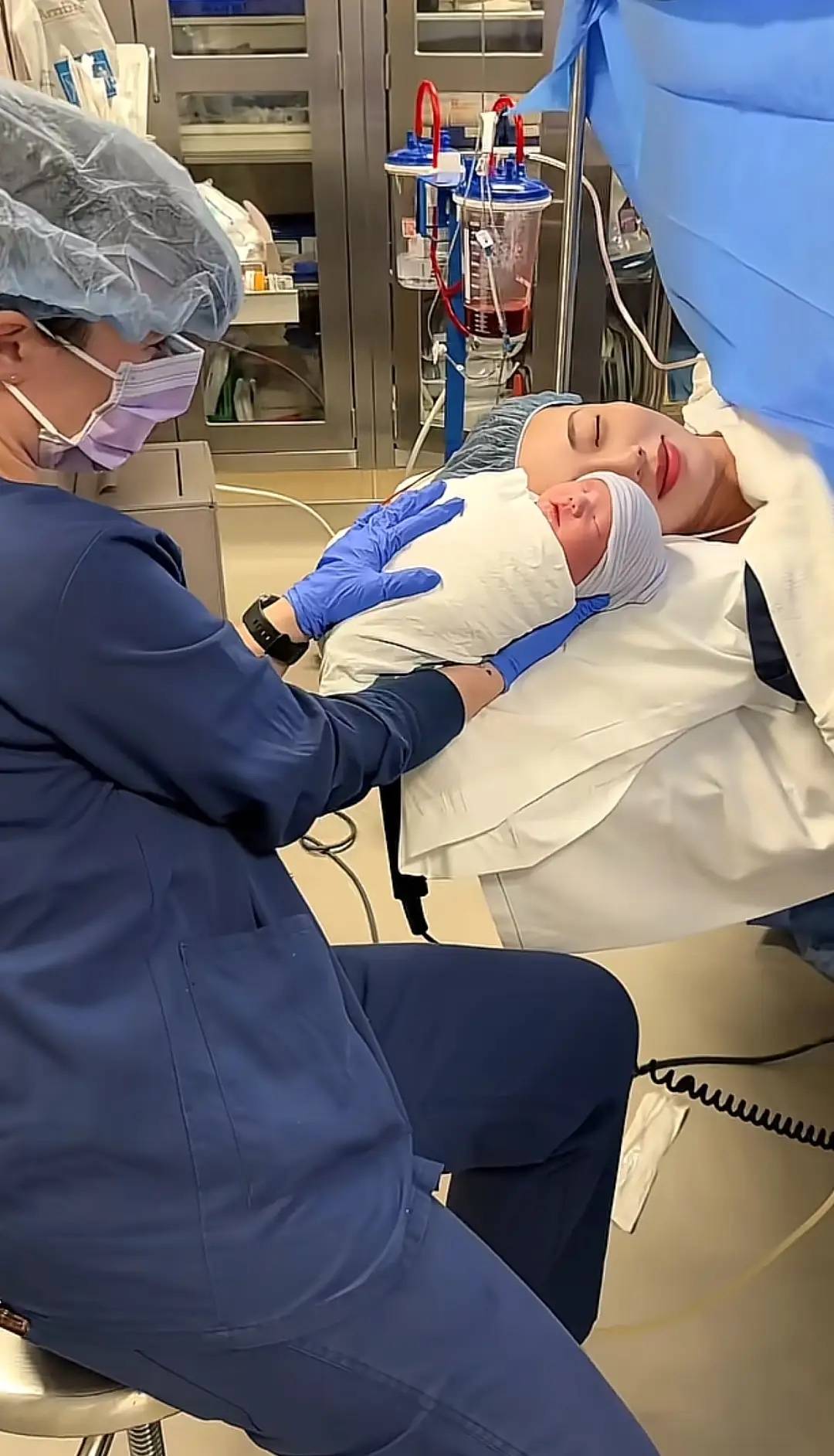 李萍女儿生产完毕后,就安心的睡去了,她化着妆、气色显得比较好,没有手术后的那种憔悴和无力感。