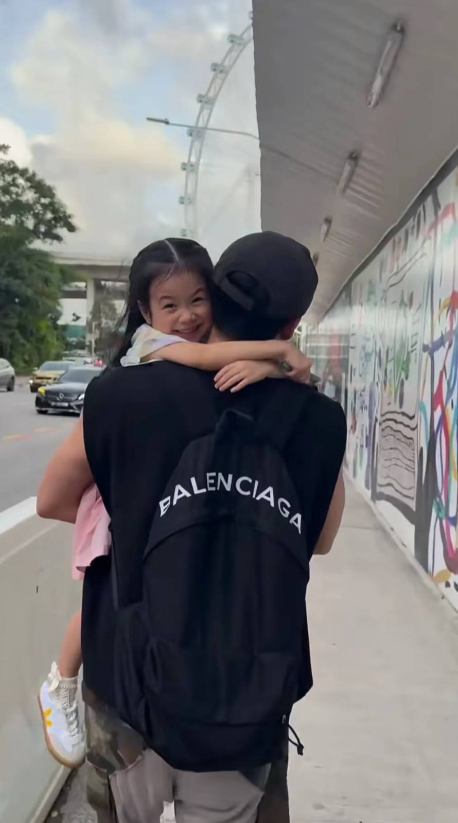 Molly也非常黏爸爸,搂着爸爸的肩膀让爸爸抱,即便是逛街的时候也是脚不沾地。小姑娘真的是太幸福了。