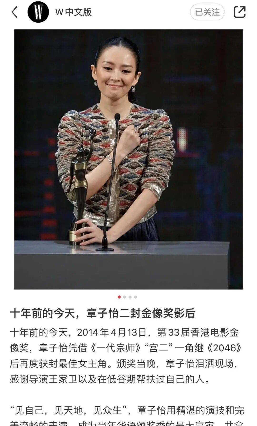 对金像奖三封,章子怡是有野心的。