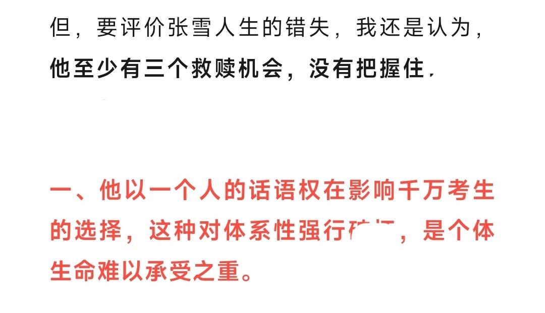 张雪峰离世后,互联网平台的风评里有大V说张雪峰错过了此生三次救赎的机会,宿命论般说他干涉了太多学生的因果,妄图想以一己之力对抗坚不可摧的“大树”。