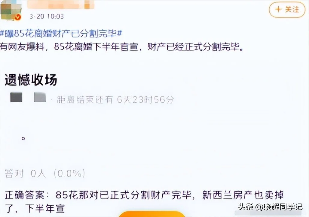 爆料内容非常具体,一线85花女星已经彻底办完了离婚手续,夫妻共同财产全部分割完毕。