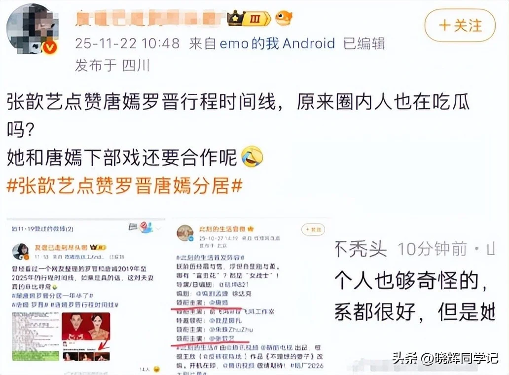 社交媒体上,唐嫣也极少提及丈夫罗晋,这种“低调”被部分人解读为关系冷淡的异常信号。
