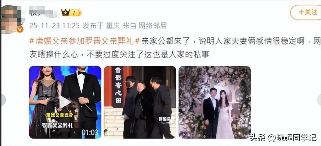 就在2025年底,罗晋的父亲去世,唐嫣全程以儿媳的身份出席了葬礼。