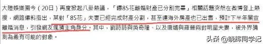 更重要的爆料中还有很多的细节,比如财产分割,8亿元人民币等。