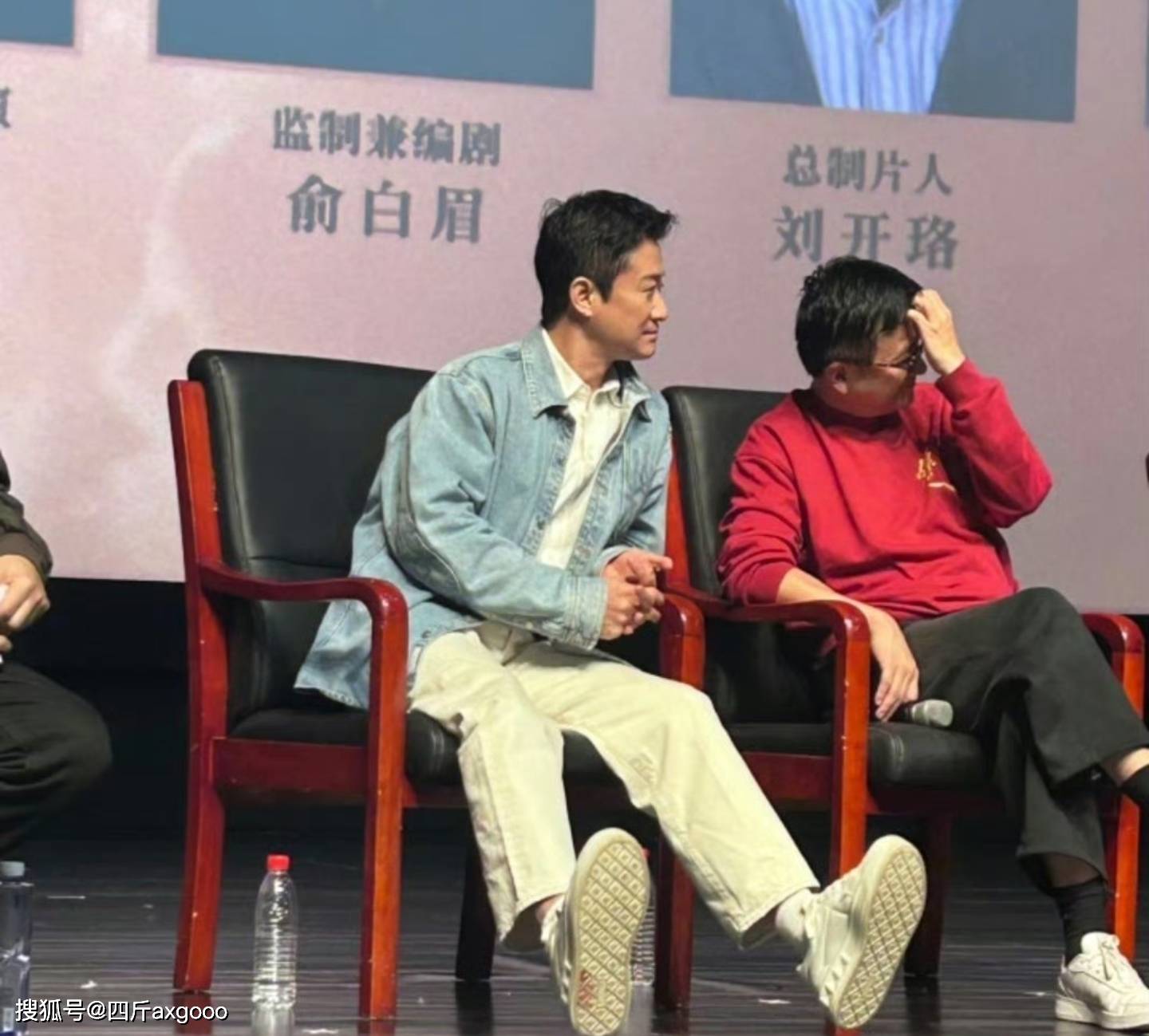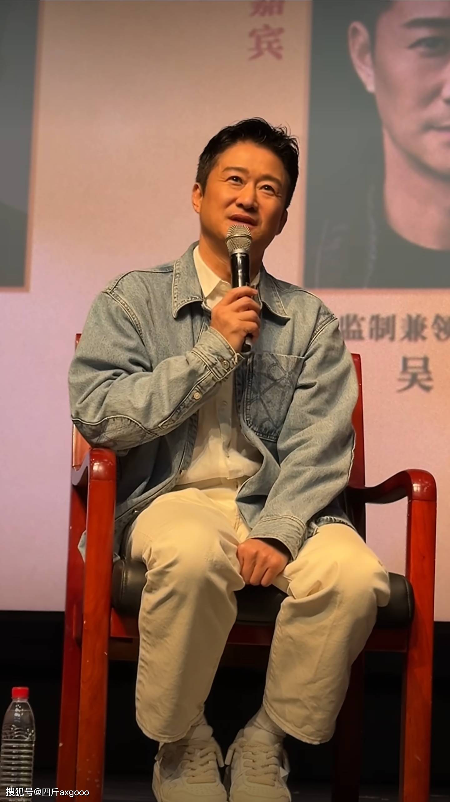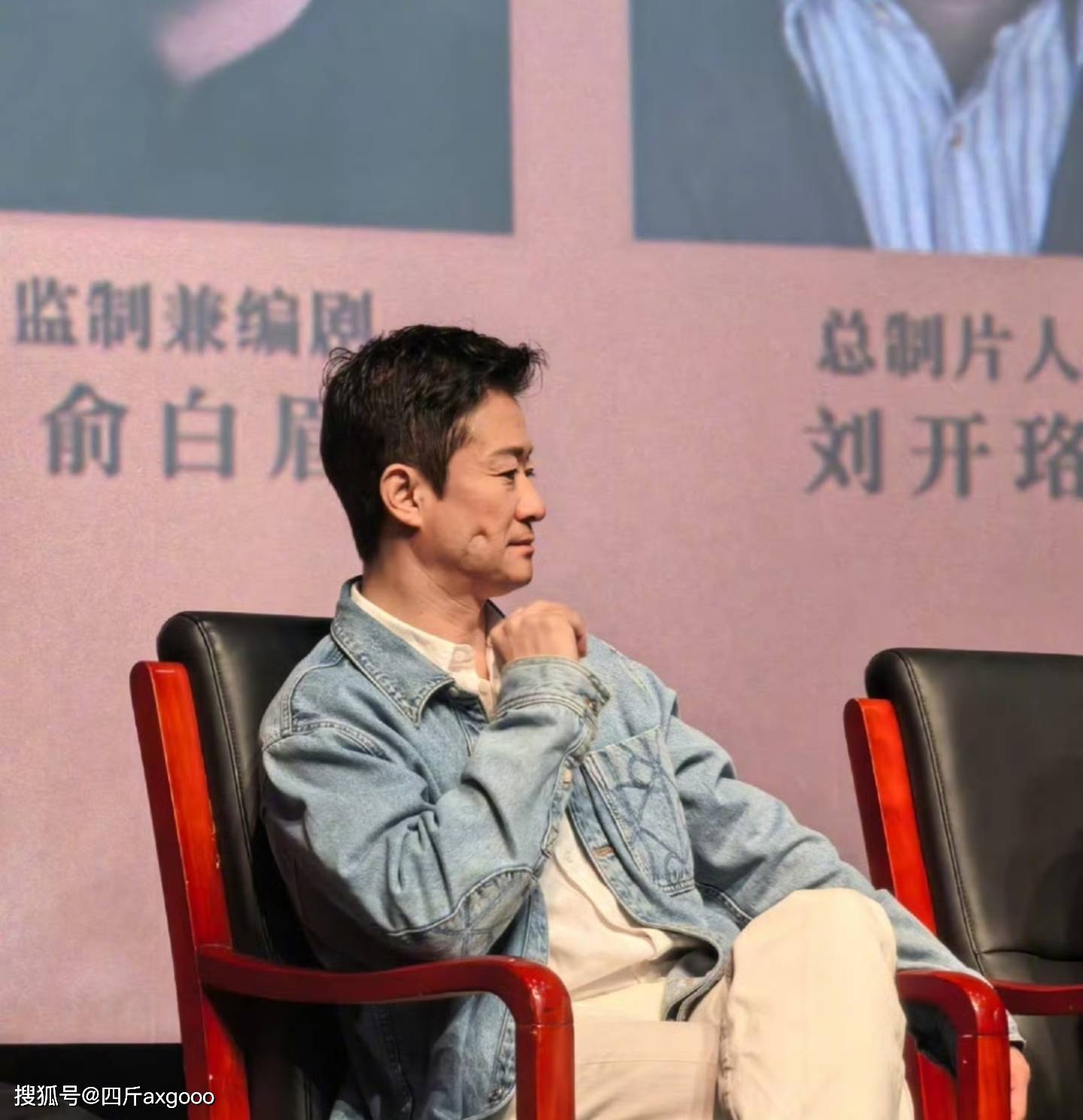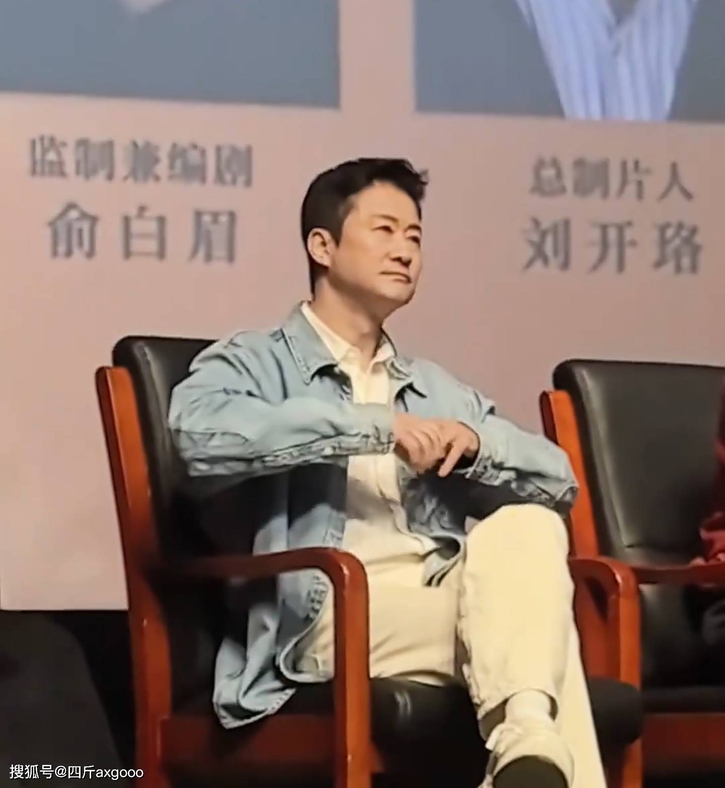 我看了一下,活动现场他穿着简单的牛仔外套,坐在主创席里,安安静静听台下观众发言。