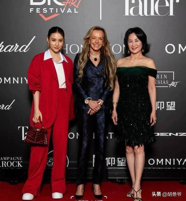 晚宴现场的章泽天,一出场就和白天逛展的样子判若两人。