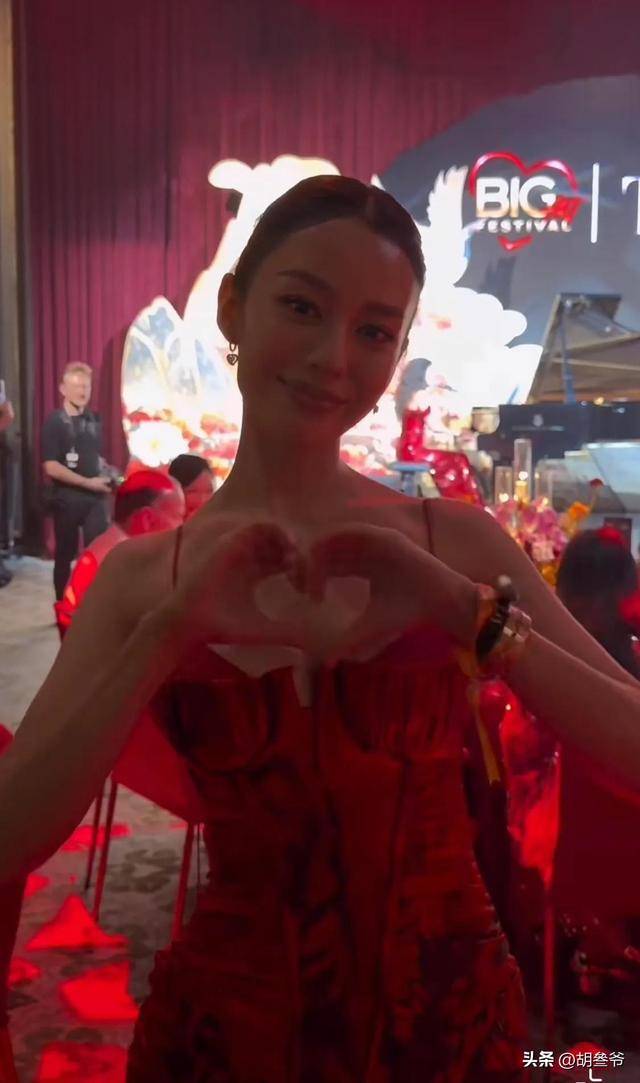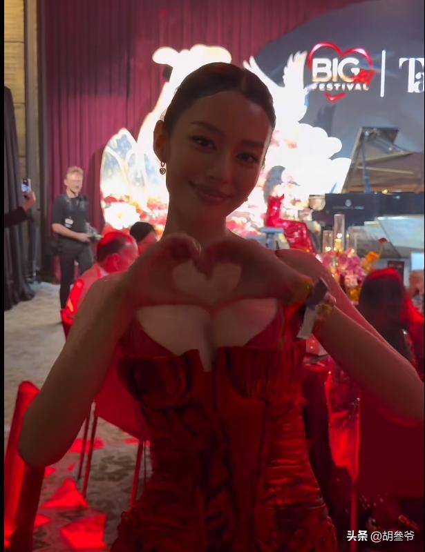 更让人意外的是,她的礼服腹部位置微微隆起,肉眼看特别明显,造型上拉胯了不少。