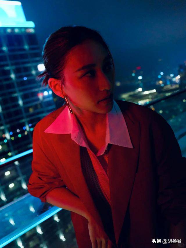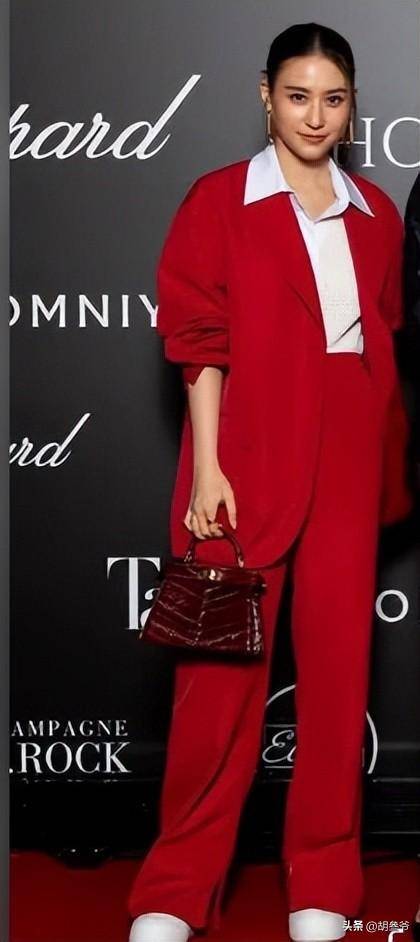 一身红色廓形西装,剪裁利落,配色明艳,穿在她身上帅气又干练,活脱脱一个霸道女总裁。