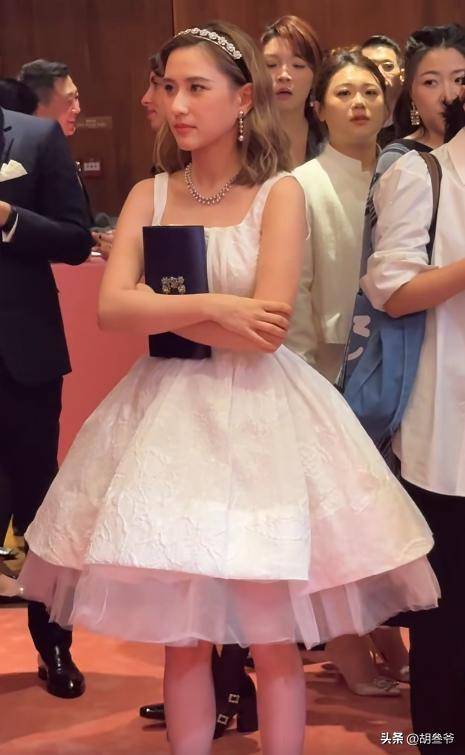 这与她前不久出席活动时穿的白色少女风裙子比起来,简直是判若两人,这套造型也比白裙好看太多。