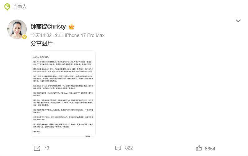 风波发酵两日后,3月23日,钟丽缇发布长文承认监护失职。她表示已立即删除照片,澄清镜中人实为同学而非姐姐Jaden,并对女儿进行了严肃的隐私教育,强调“孩子还小不懂边界”,同时以“非常抱歉、非常自责”向公众致歉。然而,文字声明远不及一次真实的同框来得直接。