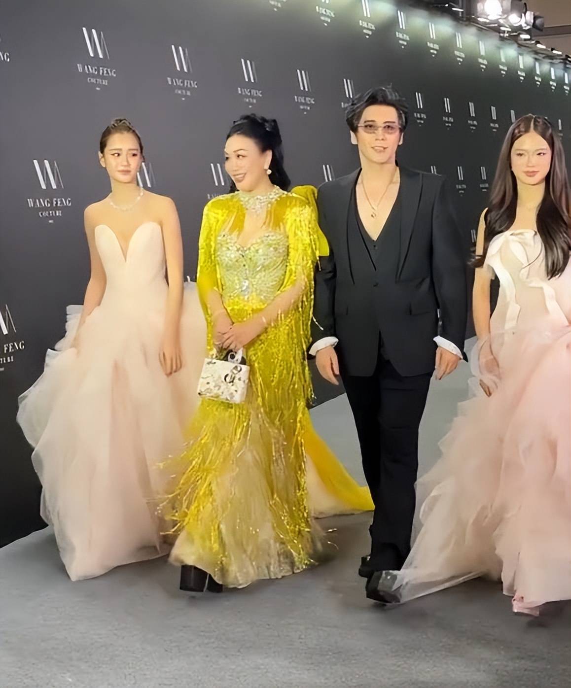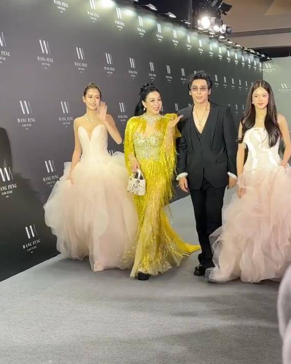 此次红毯亮相,考拉与姐姐Jaden无疑成为全场最受瞩目的焦点。姐妹俩牵手并行,台风稳健,宛如一对默契的小公主,将外界所有猜测与流言隔绝于聚光灯外。而走在她们前方的钟丽缇与张伦硕,则以并肩的姿态为家庭护航。钟丽缇一袭亮黄色吊带礼裙,展现出50+女星的绝佳状态与身材管理;张伦硕一身黑色西装,沉稳有型。夫妻二人气场全开,仿佛在用行动宣告家庭的稳固与团结。