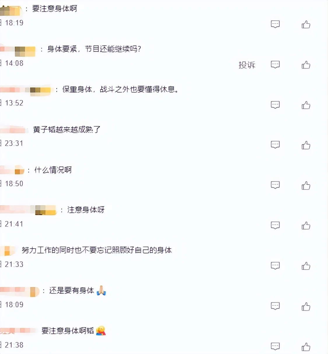 这段画面放出来后,网上粉丝全是让黄子韬注意身体的。