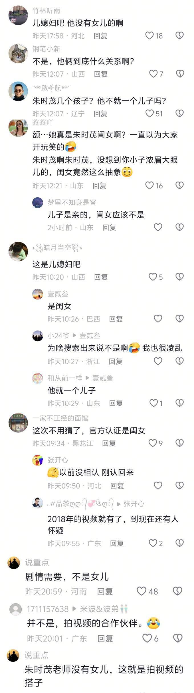 熟悉朱时茂的人都知道,在他的日常生活中,他只有一个儿子,名叫朱青阳。但在短视频中,那个称呼他为“爸爸”的女子让许多网友感到困惑,他们不确定她是他的儿媳还是真正的女儿。在朱时茂的许多视频中,她总是习惯性地称呼他为“爸爸。