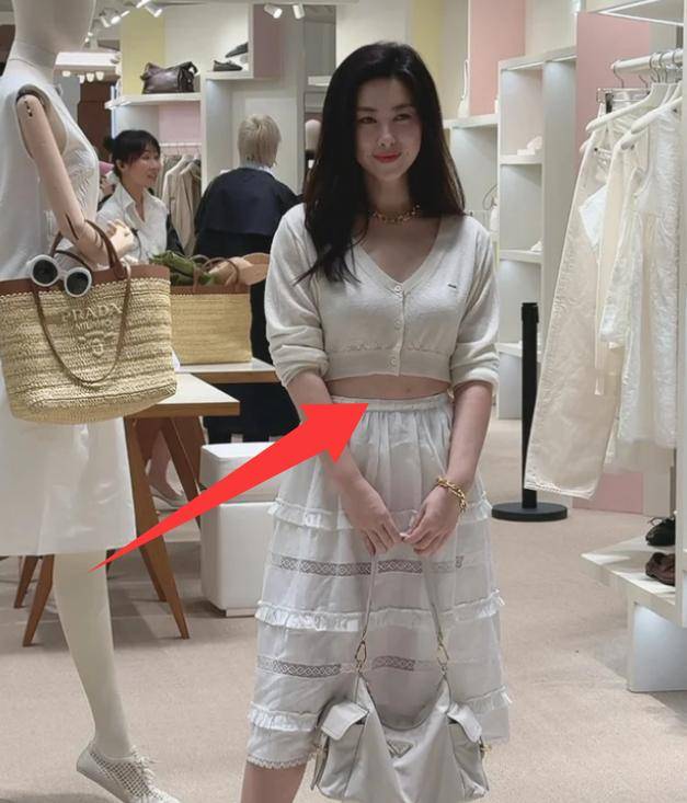 可这次Prada活动,朱珠偏反着来,穿了件浅色系露脐装,料子软软糯糯,勾勒腰线的同时,没藏住微微突出的小肚腩,那点肉肉不刻意、不违和,透着股生活化的可爱。