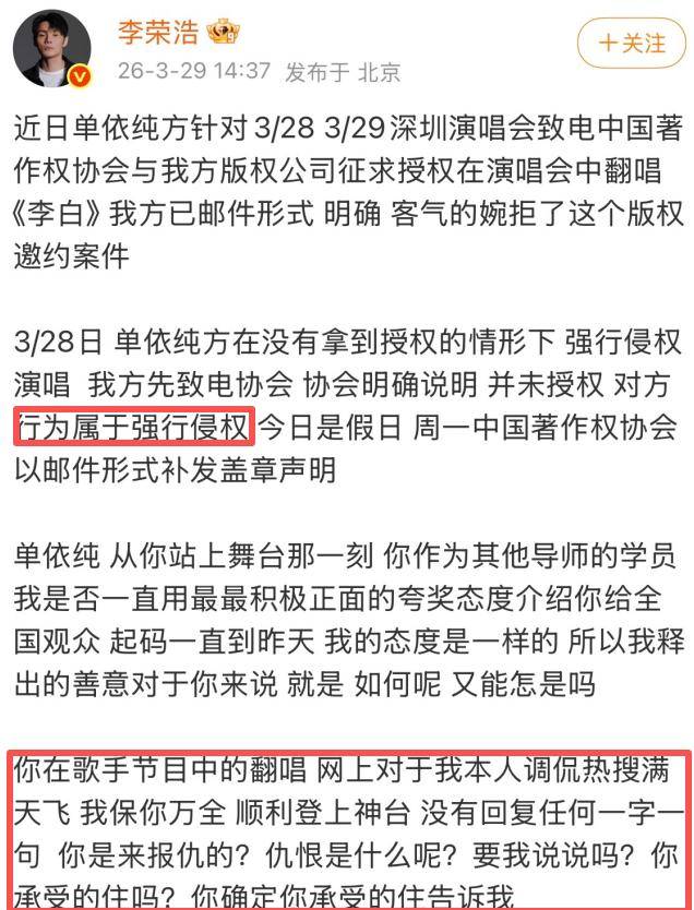 李荣浩连发好几条,我倒要看看哪个nb的团队能把这个明目张胆的侵权行为糊弄过去?