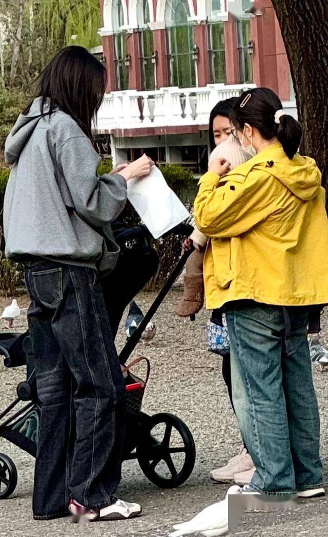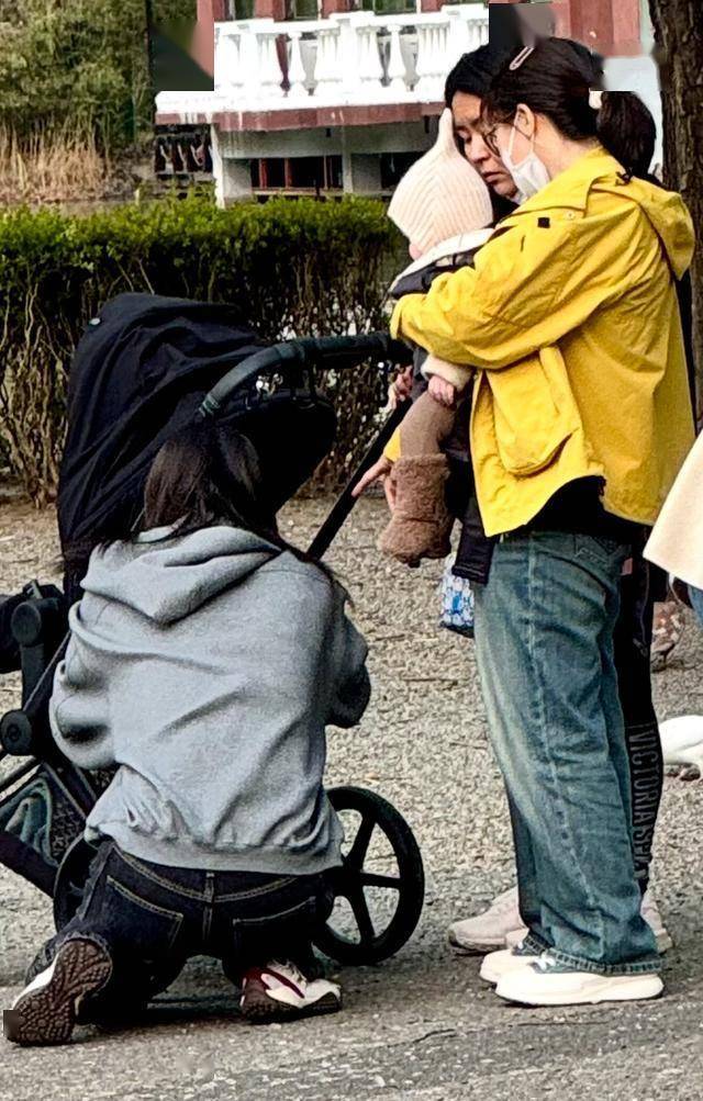 3月30日,有网友带孩子到北京紫玉公园玩,偶遇何穗带儿子出门晒太阳。