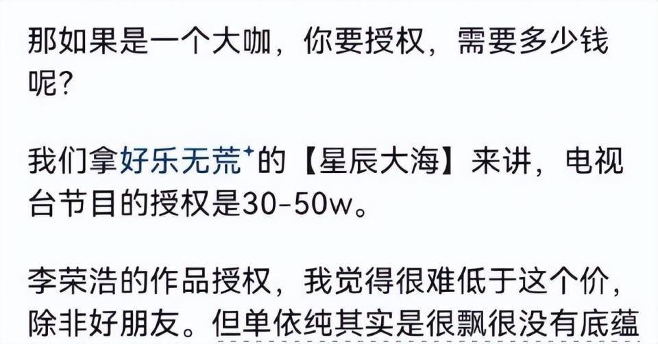 按理来说,李荣浩的作品要授权,大概最少也得几十万。