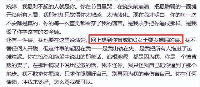 “网上提到你曾威胁Q女士要发裸照的事……婉婷对你说的那些话,根源也在我。”