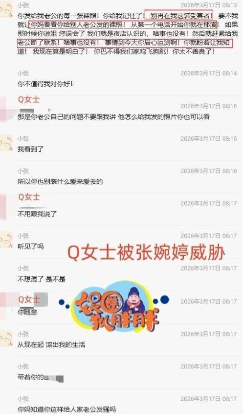 她发信息说,让女方记住发给她老公的那些照片,别在这装受害者。