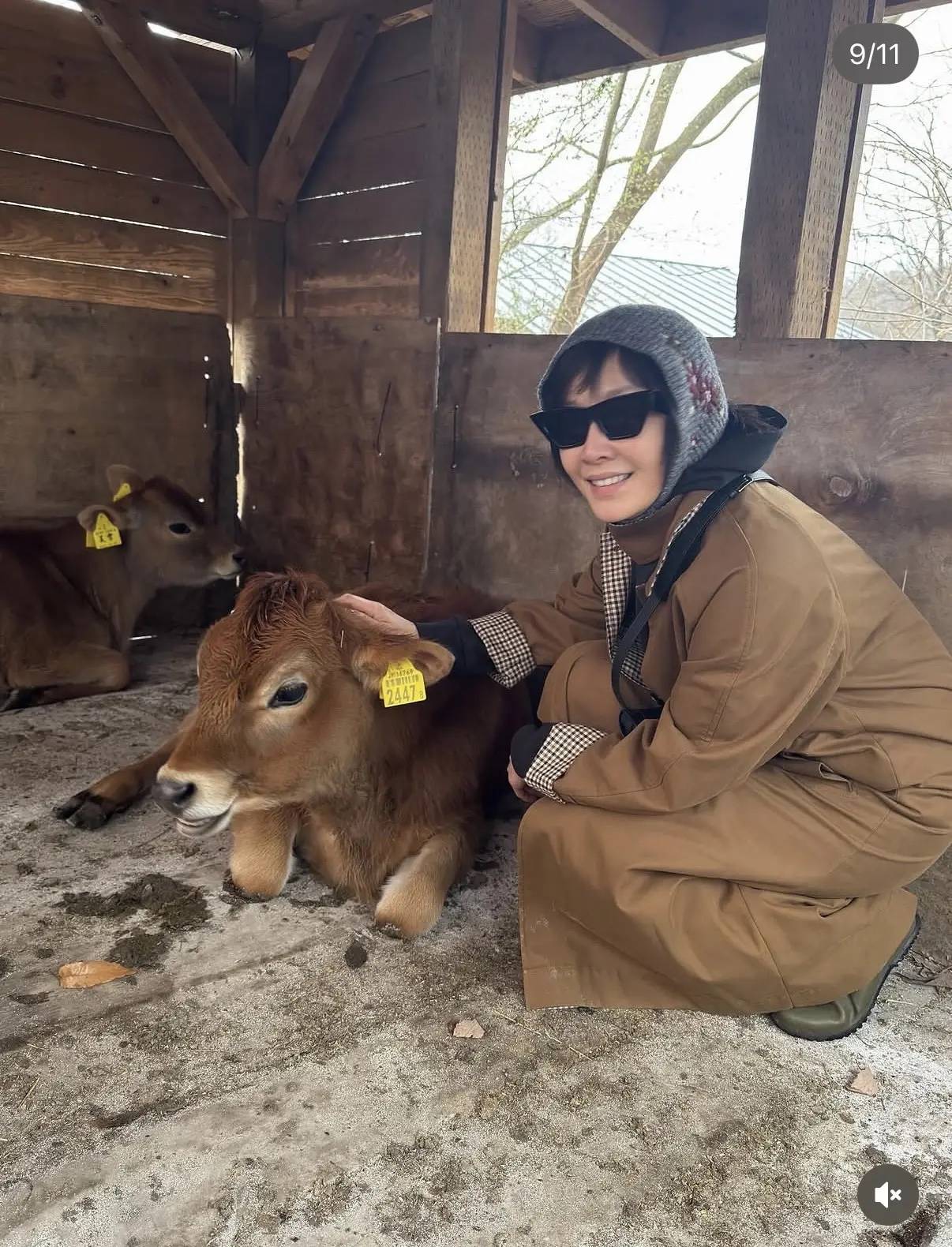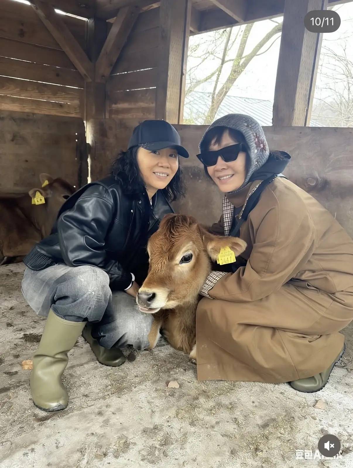 在木屋里面,还有各种小动物。确实是一个不错的旅游度假胜地,刘嘉玲还蹲在地上和小牛犊合影,她抚摸牛犊时候的模样好温柔。