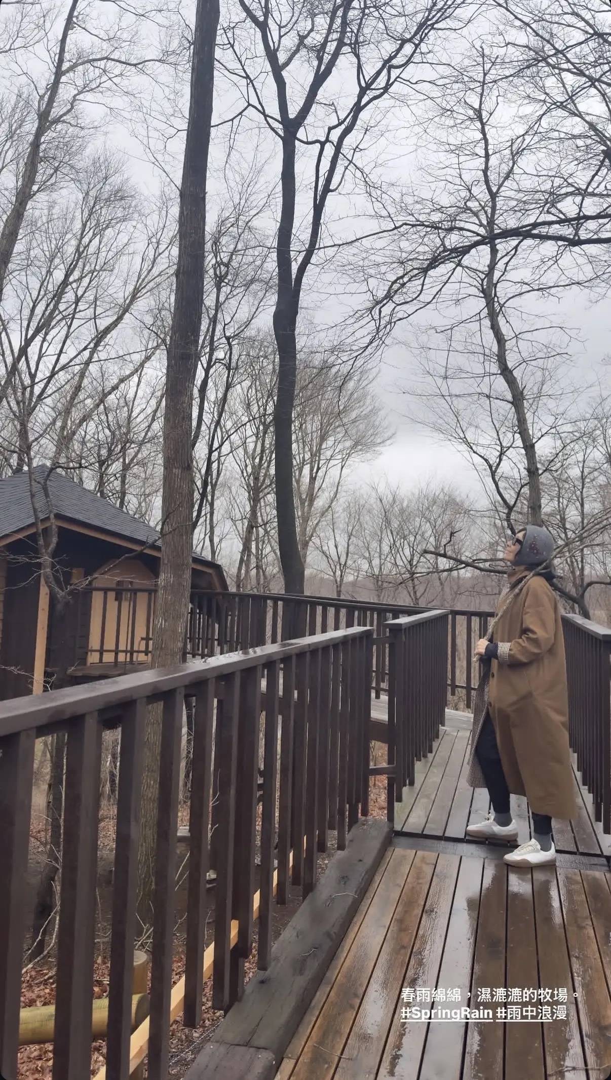 湿漉漉的牧场,并没有影响刘嘉玲度假的好心情。虽然这个位置比较偏远,给人一种人烟稀少的感觉,但里面规划的很不错。