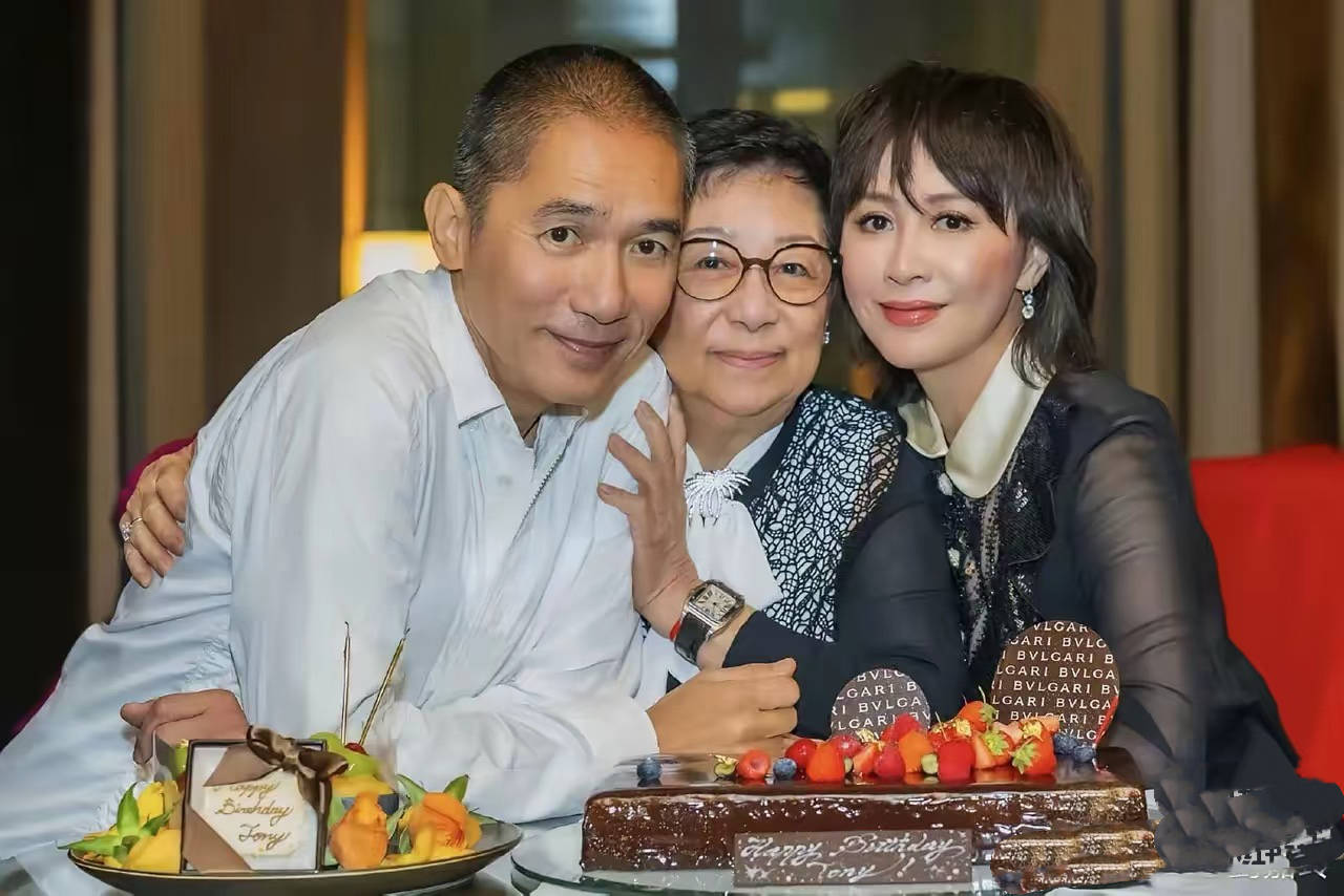 在和亲友的合影里,刘嘉玲就这么安静的坐在那里,她不经意的看向镜头、神情里都是松弛和自在。
