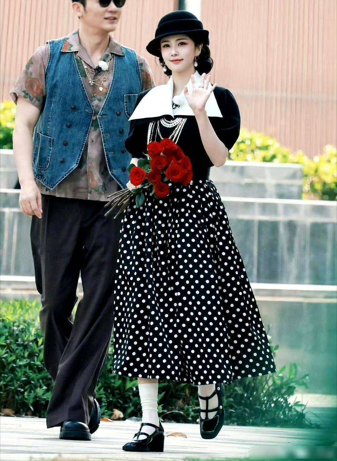 孟子义和李昀锐的合体,是本季最大惊喜。虽然两人此前已有搭档经验,但这次的CP感长久而自然。从路透来看,两人的配合度简直满分。孟子义穿红色波点上衣配蓝色牛仔裤,明媚温婉又有韵味;李昀锐穿格子衬衫搭棕色吊带裤,清新阳光又自然。两人的同框照让人不自觉联想到年代小说中的青春故事。