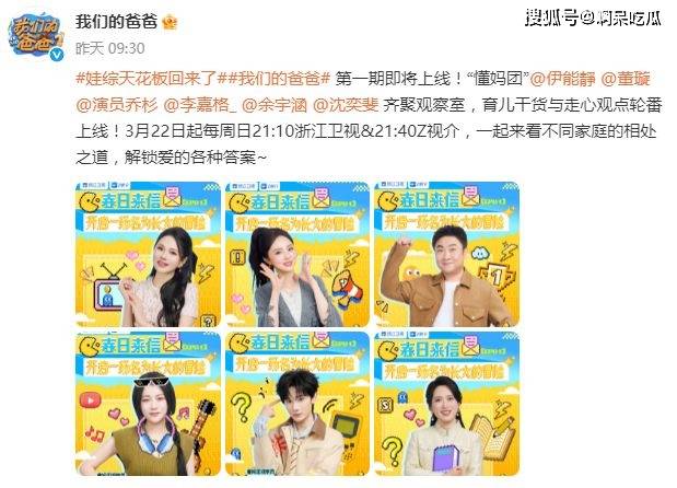 生活观察类真人秀《我们的爸爸》第二季,已于3月29日21:10在浙江卫视、21:40在Z视介平台正式播出。