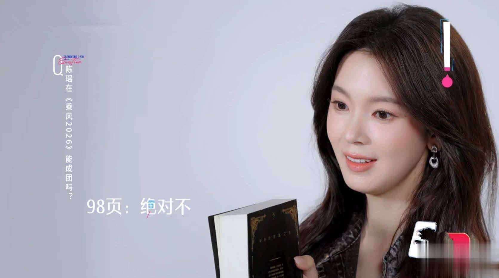 陈瑶想问的第二个问题是:我在《乘风2026》能成团吗?曾舜晞让她翻到《答案之书》第九十八页,而陈瑶之前告诉他,第九十八页写着绝对不,这一刻她的心情瞬间降至冰点。曾舜晞见状连忙补充:开玩笑开玩笑,翻九十七页。陈瑶觉得无妨,但看到九十七页的答案——专注你的家庭生活?——又有些迷惑。曾舜晞随即解释:你把所有姐姐都当作家人去享受节目,那就是一家人了,也就意味着能成团。