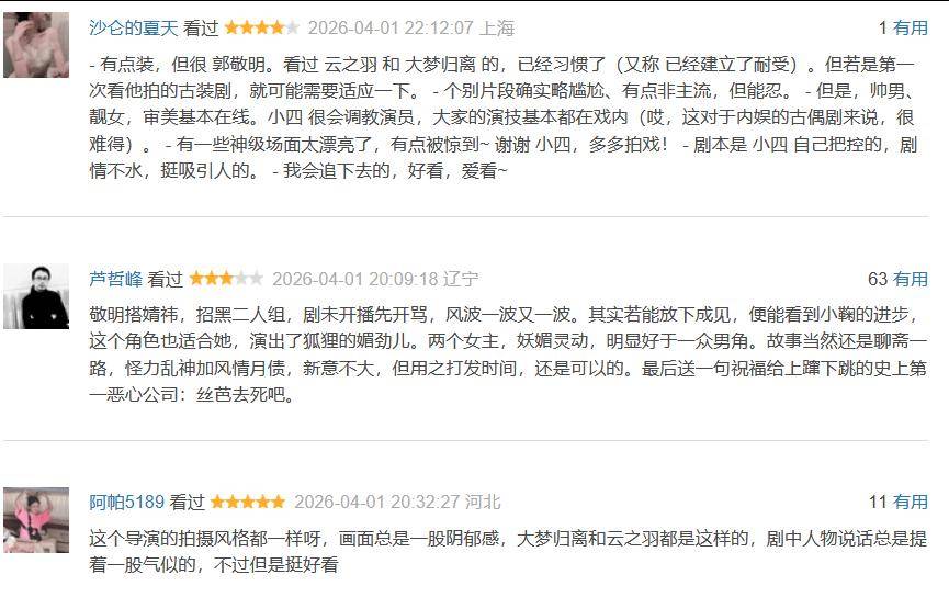 整体四集故事看完,观众对这部剧的评价也是出炉了,大家的观点是一针见血。