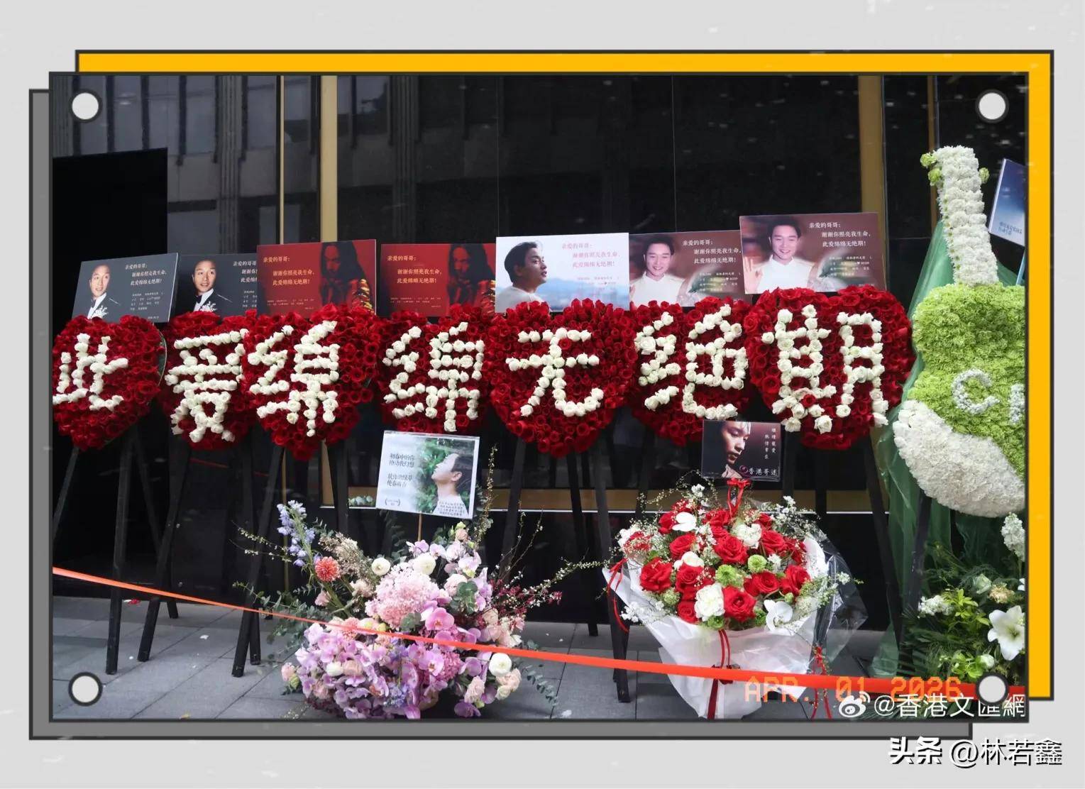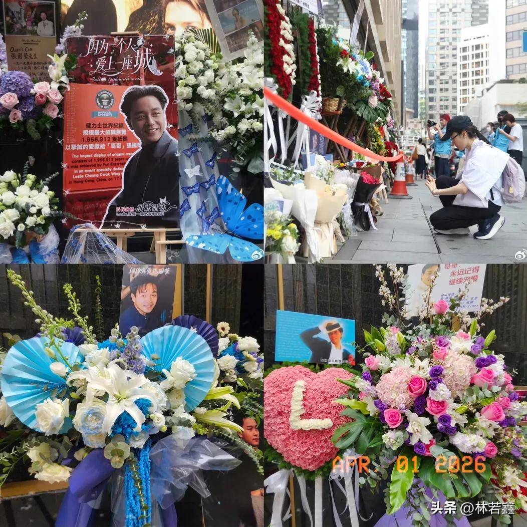 这两天五湖四海的粉丝前往香港文华酒店悼念小哥,酒店外摆满了鲜花和张国荣的照片,看的人很感动!